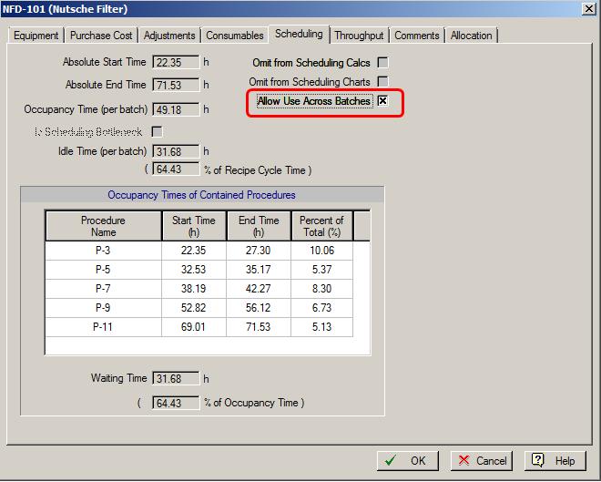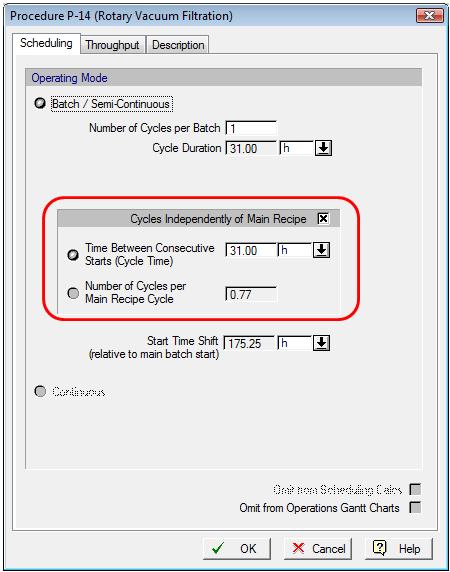 More Flexibility in Recipe Scheduling Calculations. A distinction is now made between the annual available time and the annual operating time. This allows more options for the user to specify or have calculated the number of batches and the recipe cycle time.