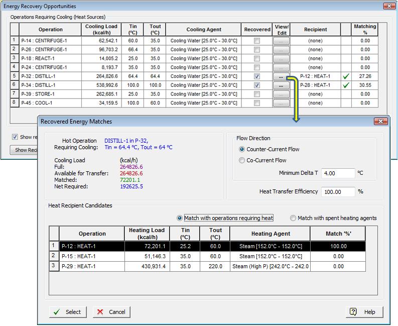 through the "Energy Recovery Opportunities" window (Edit \ Process Options \