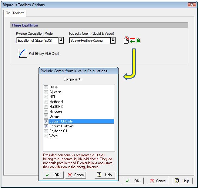 is possible to exclude certain components (e.g., non-volatile solids) from the VLE calculations by clicking the “Exclude Components From…” button and then